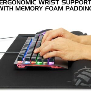 The ENHANCE Blackout Gaming Mouse Pad with built in memory foam ergonomic support features over 310 square inches of tracking surface and a 1 inch memory foam support bar for both keyboard and mouse. A premium fabric surface with both the comfort and space that serious gamers need.