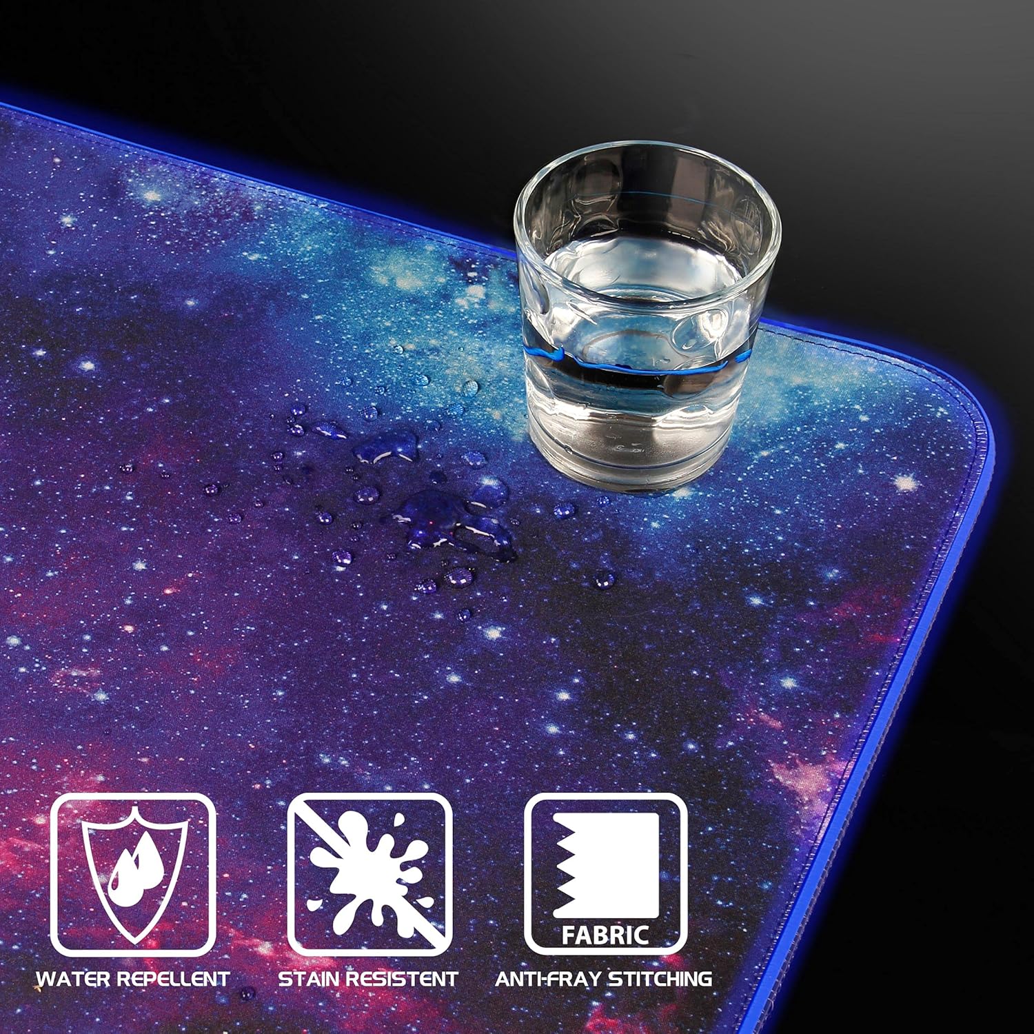 The anti-fray stitching ensures that your pad will be long-lasting. Not to worry if you spill your water as the XXXL mouse pad is indeed water resistant.