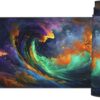 Gaming Mouse Pad RGB, 35″x15.8″ Large Keyboard Desk Mat with Magnetic Wireless Charging for iPhone, 24 Light Effects, Non-Slip Base, Waterproof Ultra-Smooth Surface, with Adapter, Black
