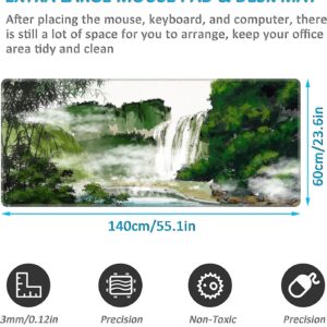 LL-COEUR Landscape Extended Mousepad 55.1″x23.6″x0.12″ Waterproof Keyboard Mouse Mat with Anti-Slip Rubber Base Long Desk Pad for Gamer Office Home L