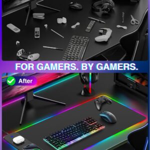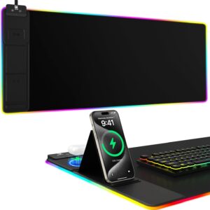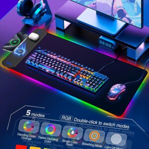Magnetic RGB Gaming Mouse Pad 31.5×15.75 Inch, 15W Fast Wireless Charging Desk Mat, XXL Desk Pad with 11 RGB Lighting Modes, Home Office Large Keyboard Pad with Ultra-Smooth Surface, Non-Slip Base