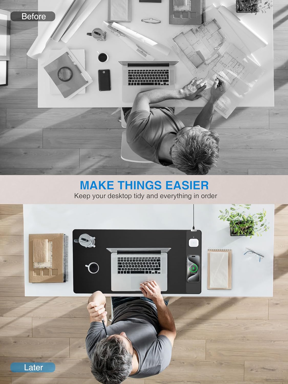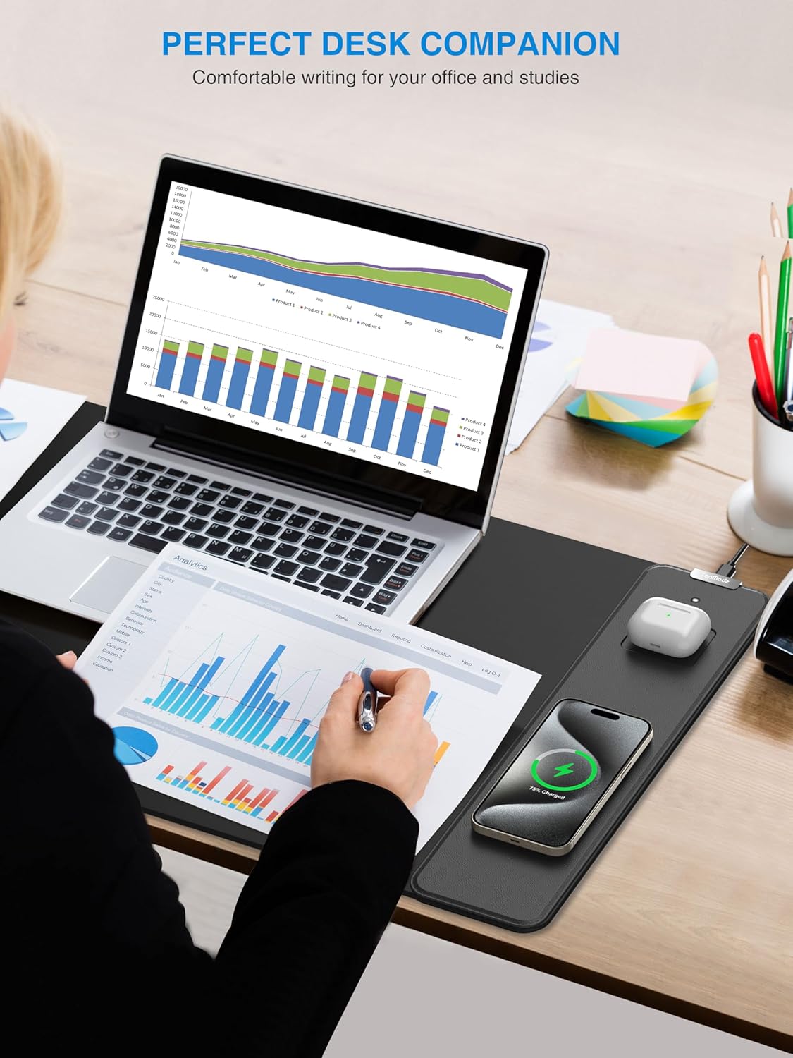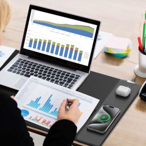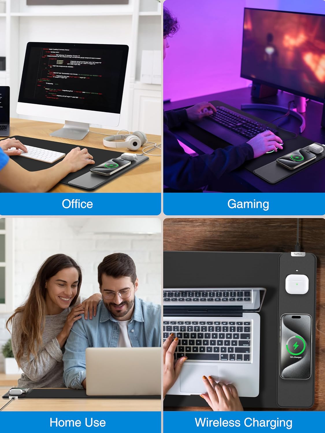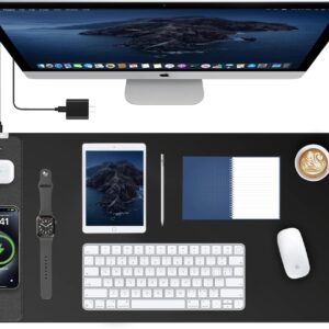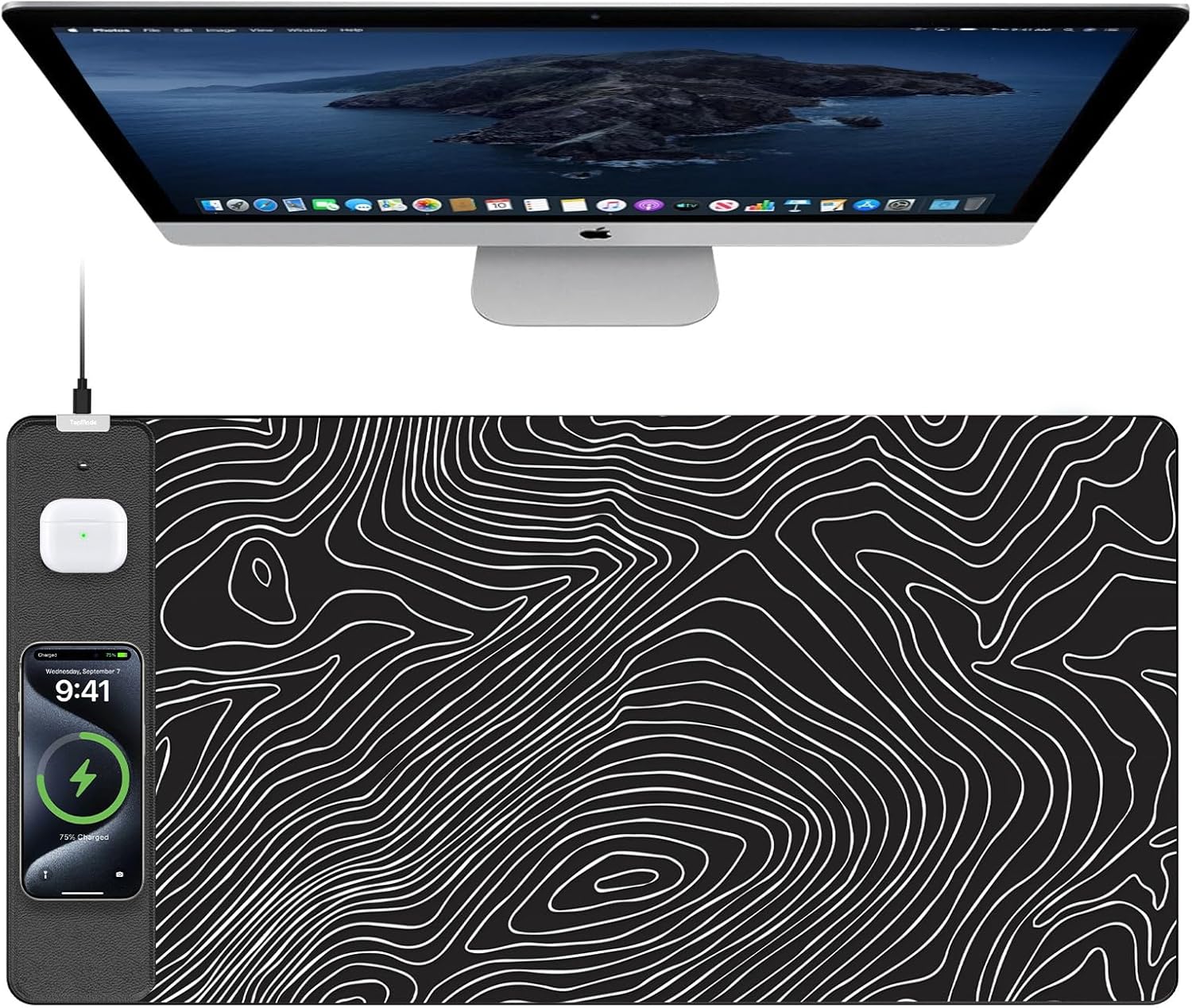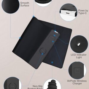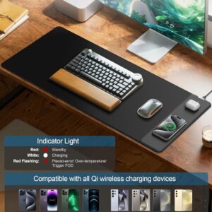 TopMade Mouse Pad with 15W Wireless Charging, Gaming Mousepad Home Office Large Desk Pad with Ultra-Smooth Surface, Non-Slip Base, Waterproof Keyboard Pad, Classic Black Desk Mat