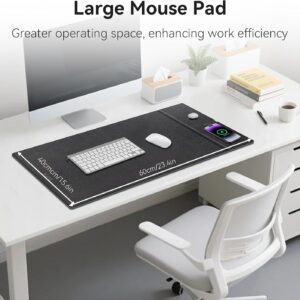 Wireless Charging Mouse Pad, 23.4″x15.6″ XL Large Office Desk Pad with Ultra-Smooth Surface,Non-Slip Base, Classic Black Waterproof Computer Desk Mat for MacBook, PC, Laptop