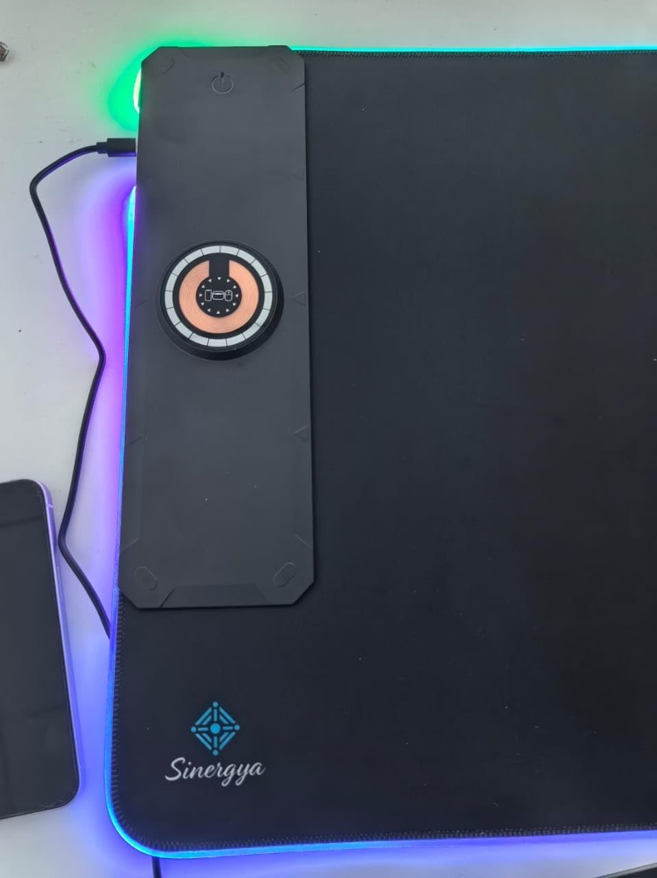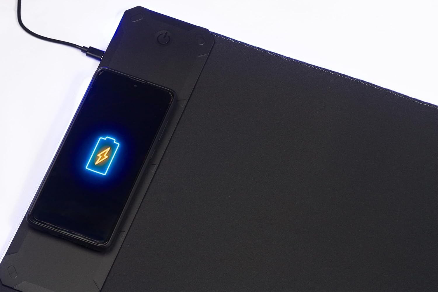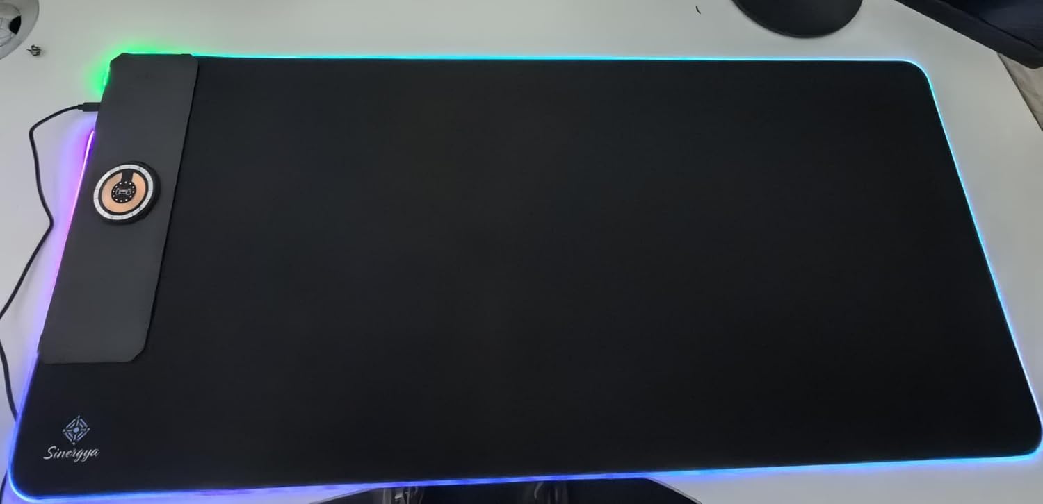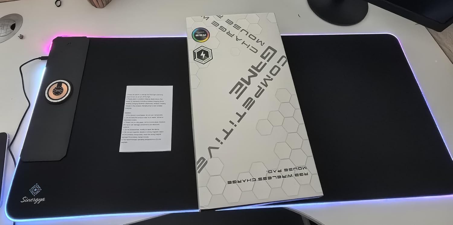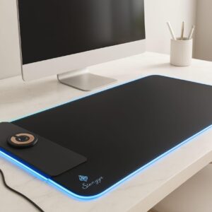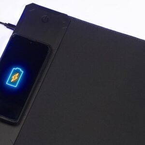 - 【15W Qi Wireless Charging Mouse Mat】Built-in 15W wireless fast charging compatible with smartphones which support wireless charging such as iPhone 8/X/XR/XS/11/11 Pro/12/12 Pro/12 pro max/13/13 Pro/13 pro max, Samsung Galaxy 10/S9/S8 Plus, Galaxy Note 9/8, and all other Qi-enabled devices. 3 charging modes indicator – RED for charging, GREEN for full charged, YELLOW for standby mode. (NOTE: 15W need power adapter 9V 2A,But power adapter is not included with this Mouse Pad)