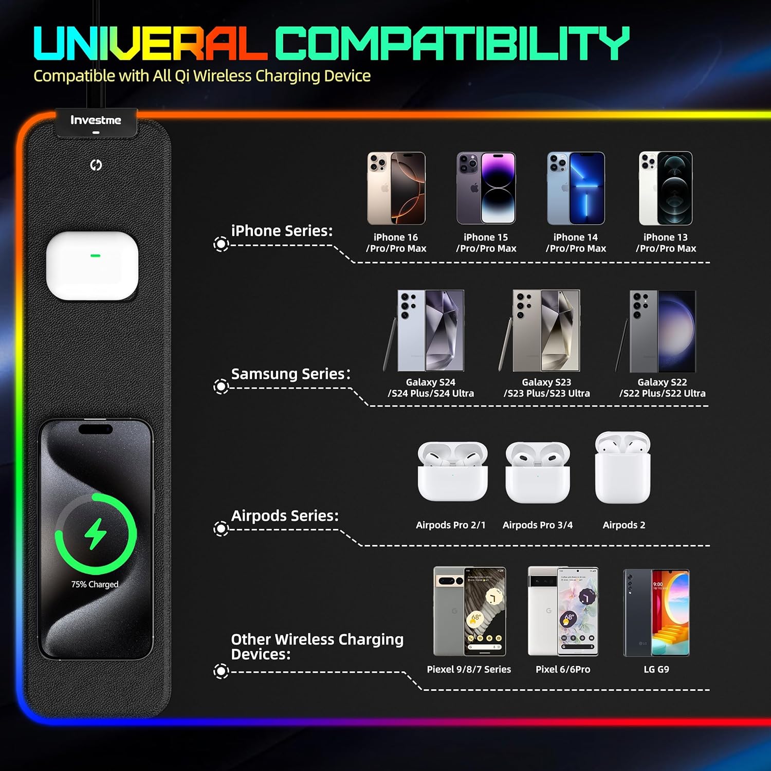 15W fast charging for your phone , airPods and other Qi-enabled devices
